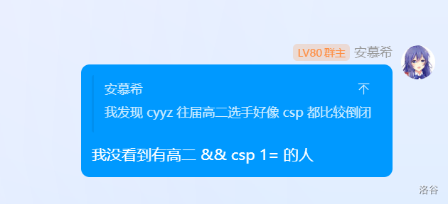 后面自我调节了一下,感觉心情好了点,感觉一次根本不是人的二等奖或者三等奖也不一定是坏事,至少应该庆幸爆的是 CSP 而不是 NOIP 或是别的考试。